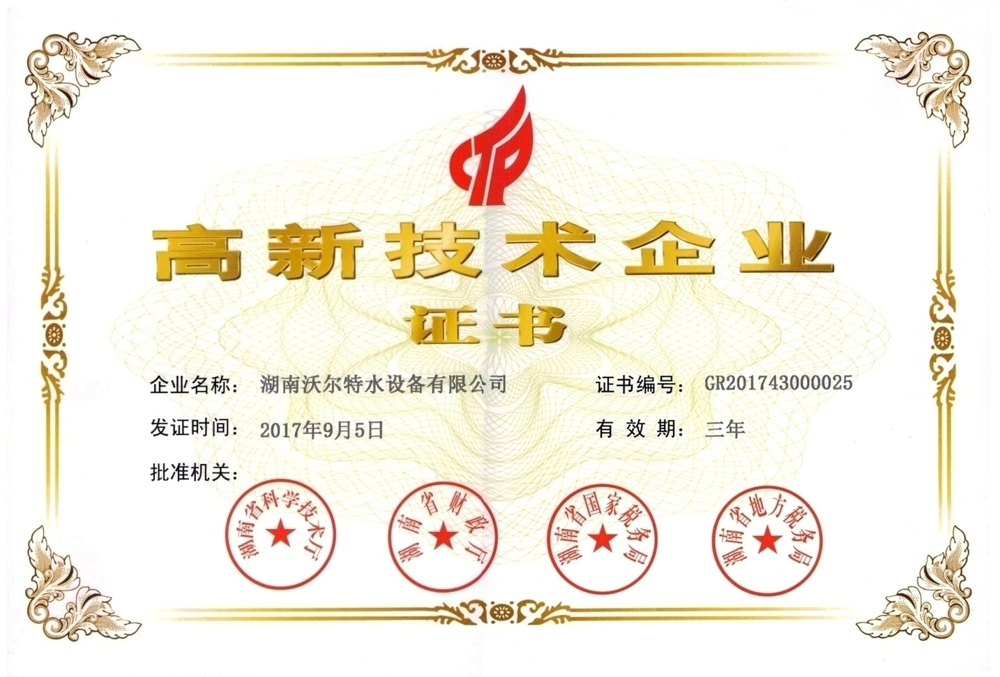 沃爾特榮獲“高新技術(shù)企業(yè)”認(rèn)證